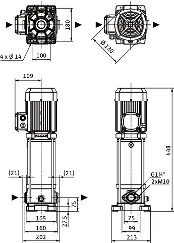Pompa o kompaktowej konstrukcji z wałem przelotowym silnik-pompa i niezależnym od kierunku obrotów uszczelnieniem mechanicznym. Komory stopni, wirniki i kierownice przepływowe ze stali nierdzewnej. Płyta podstawy pompy z żeliwa z powłoką kataforetyczną z połączeniem kołnierzowym owalnym.