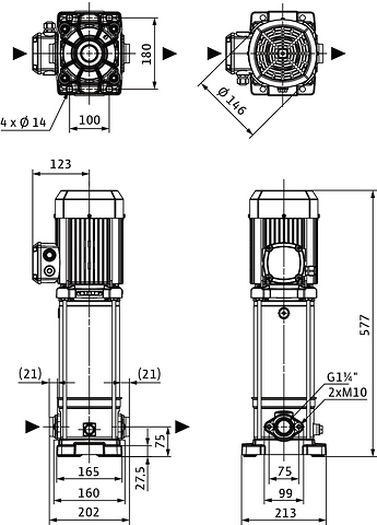 Pompa o kompaktowej konstrukcji z wałem przelotowym silnik-pompa i niezależnym od kierunku obrotów uszczelnieniem mechanicznym. Komory stopni, wirniki i kierownice przepływowe ze stali nierdzewnej. Płyta podstawy pompy z żeliwa z powłoką kataforetyczną z połączeniem kołnierzowym owalnym.