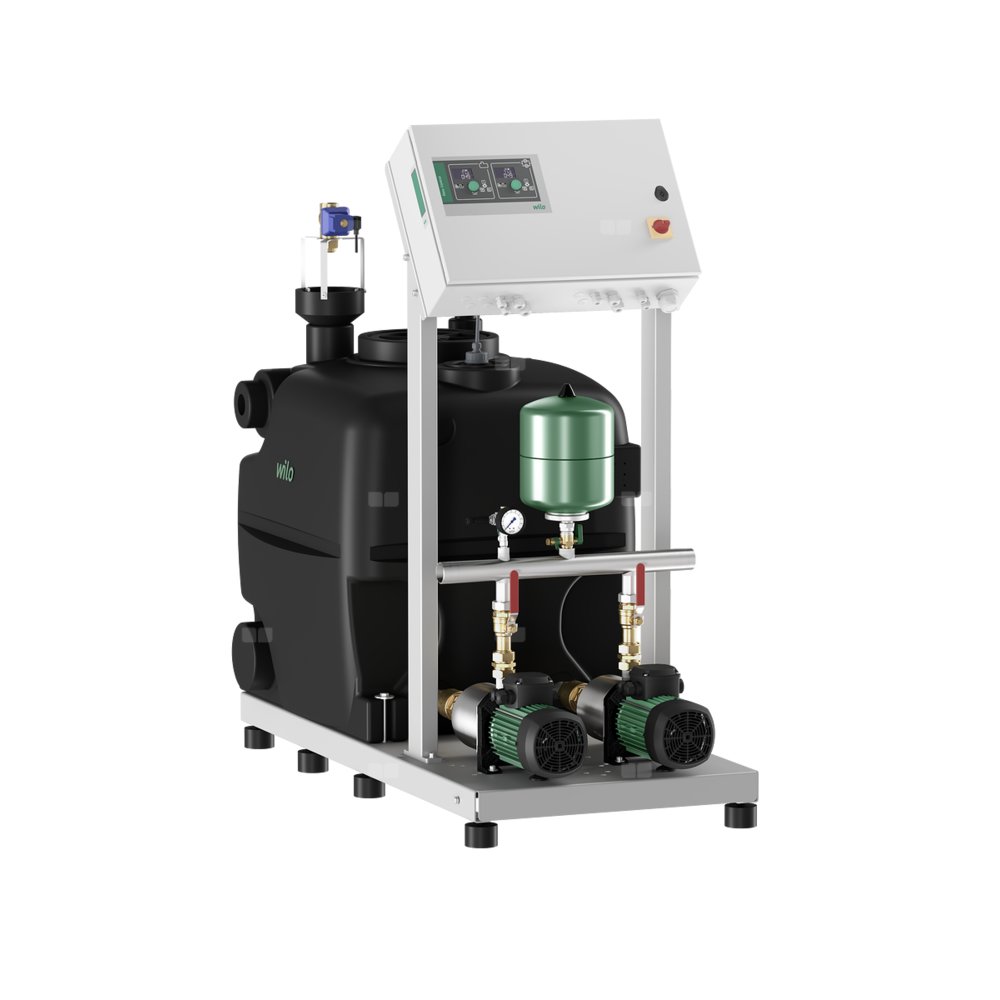 Kompaktowe urządzenie do wykorzystania wody deszczowej zgodnie z DIN 1989-100 oraz DIN EN 16941-1 z elastycznym orurowaniem zbiorczym po stronie tłocznej w celu oszczędzania wody użytkowej. Składa się z dwóch normalnie zasysających, wielostopniowych, poziomych wysokociśnieniowych pomp wirowych typoszeregu Wilo-Medana CH1-LSP (pompy do podwyższania ciśnienia) i zamawianych osobno pomp zasilających w cysternie (patrz typoszereg Wilo-Padus UNI albo Wilo-Sub TWI). Gotowe do podłączenia, zamontowane na płycie podstawy z nóżkami z regulowaną wysokością, wraz z urządzeniem regulacyjnym do wygodnego sterowania systemem.