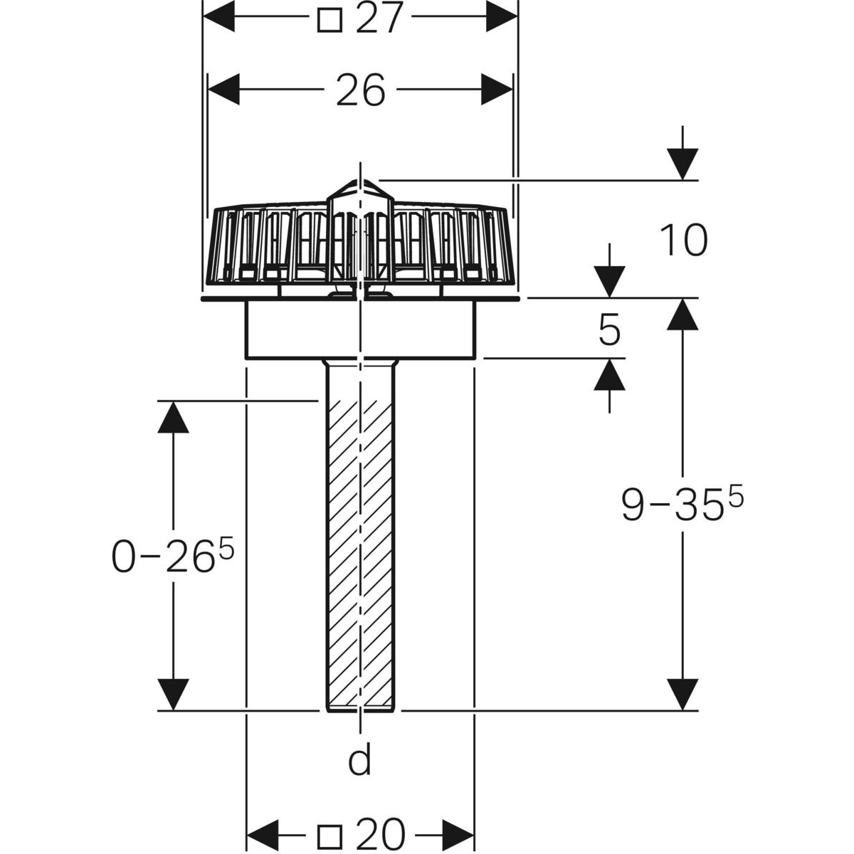 Wpust dachowy Geberit Pluvia z uniwersalnym kołnierzem przyłączeniowym d56 do rynien zbiorczych