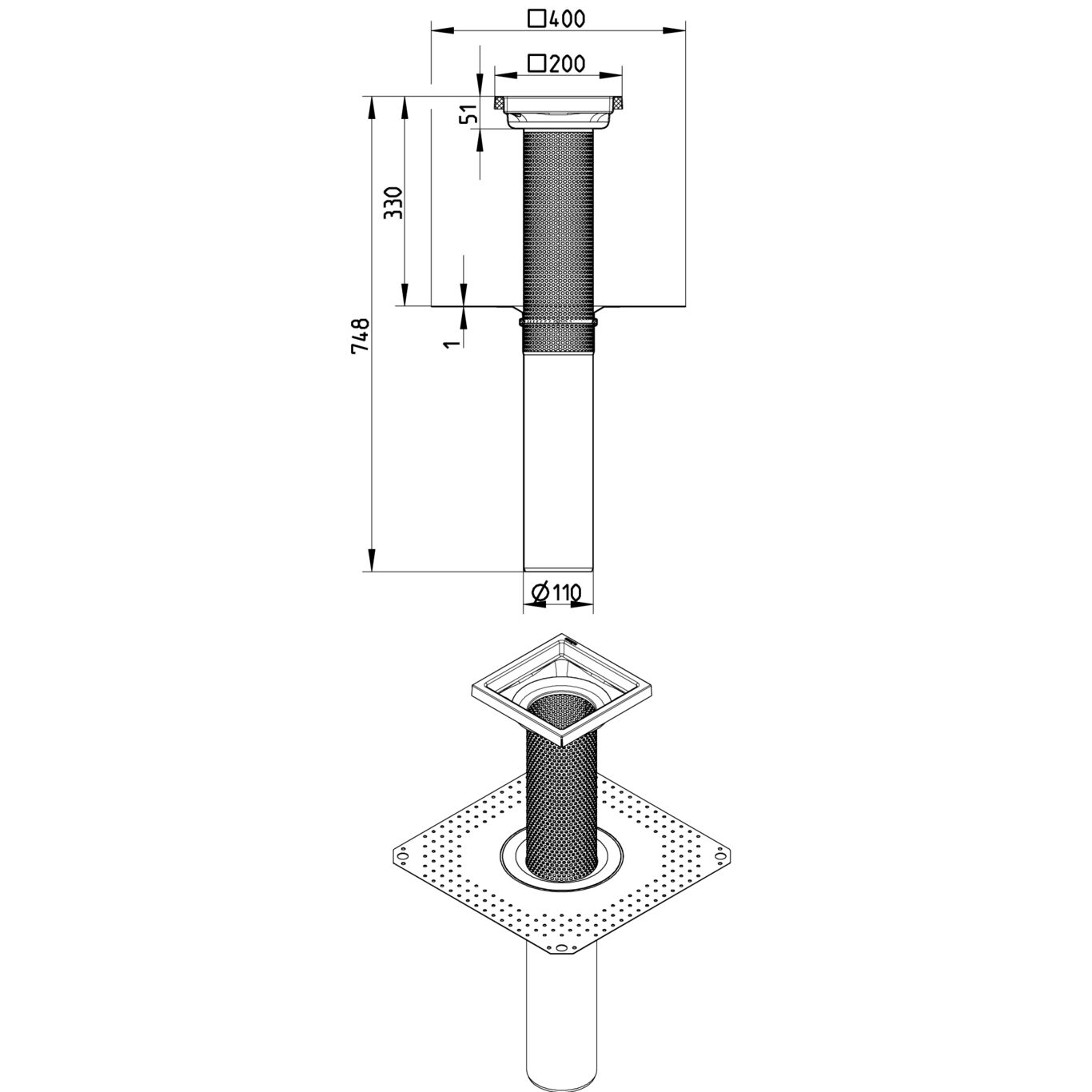 Wpust dachowy grawitacyjny DN =110 mm z kołnierzem nierdzewnym