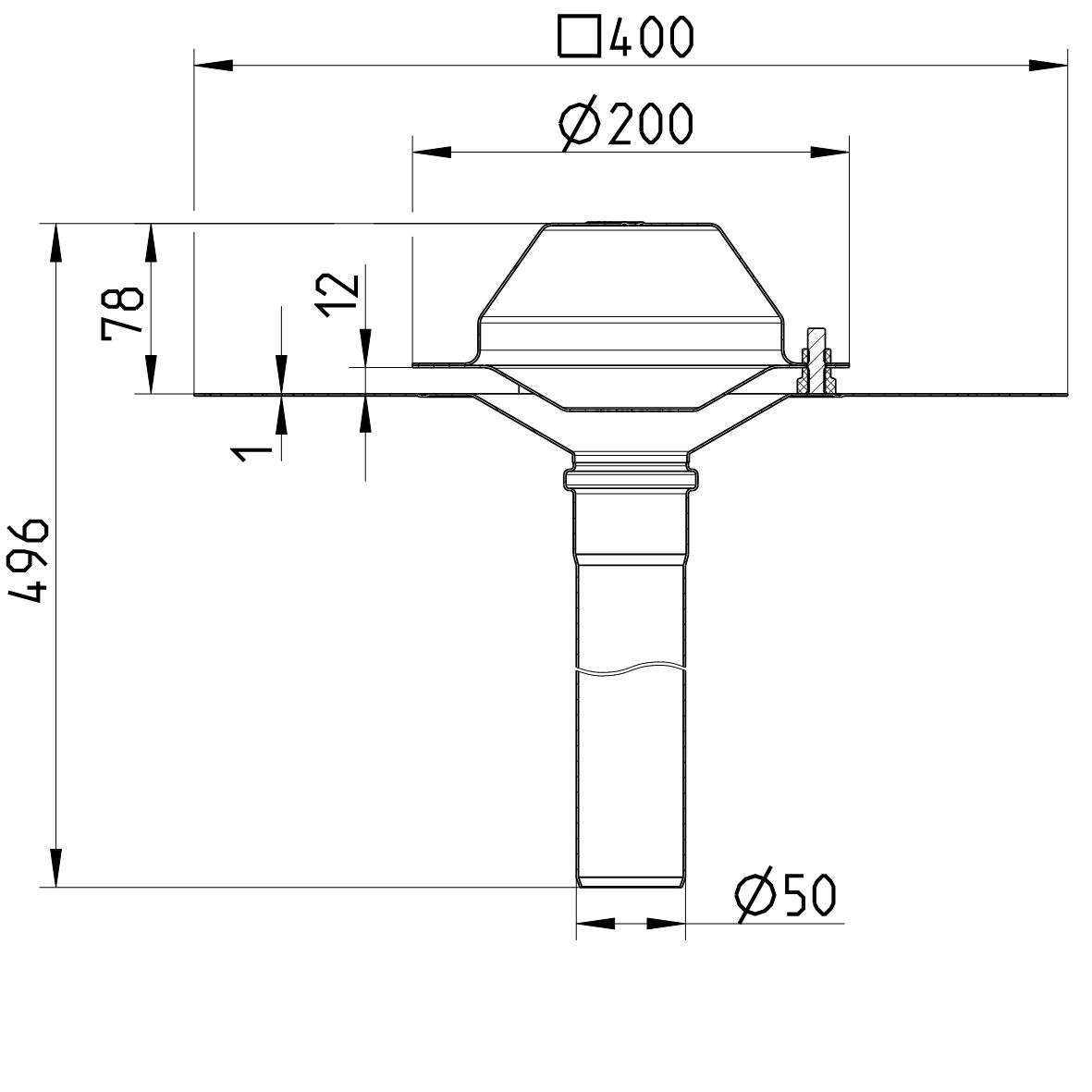 Wpust dachowy podciśnieniowy DN =50 mm z kołnierzem nierdzewnym do pojedynczej warstwy izolacyjnej