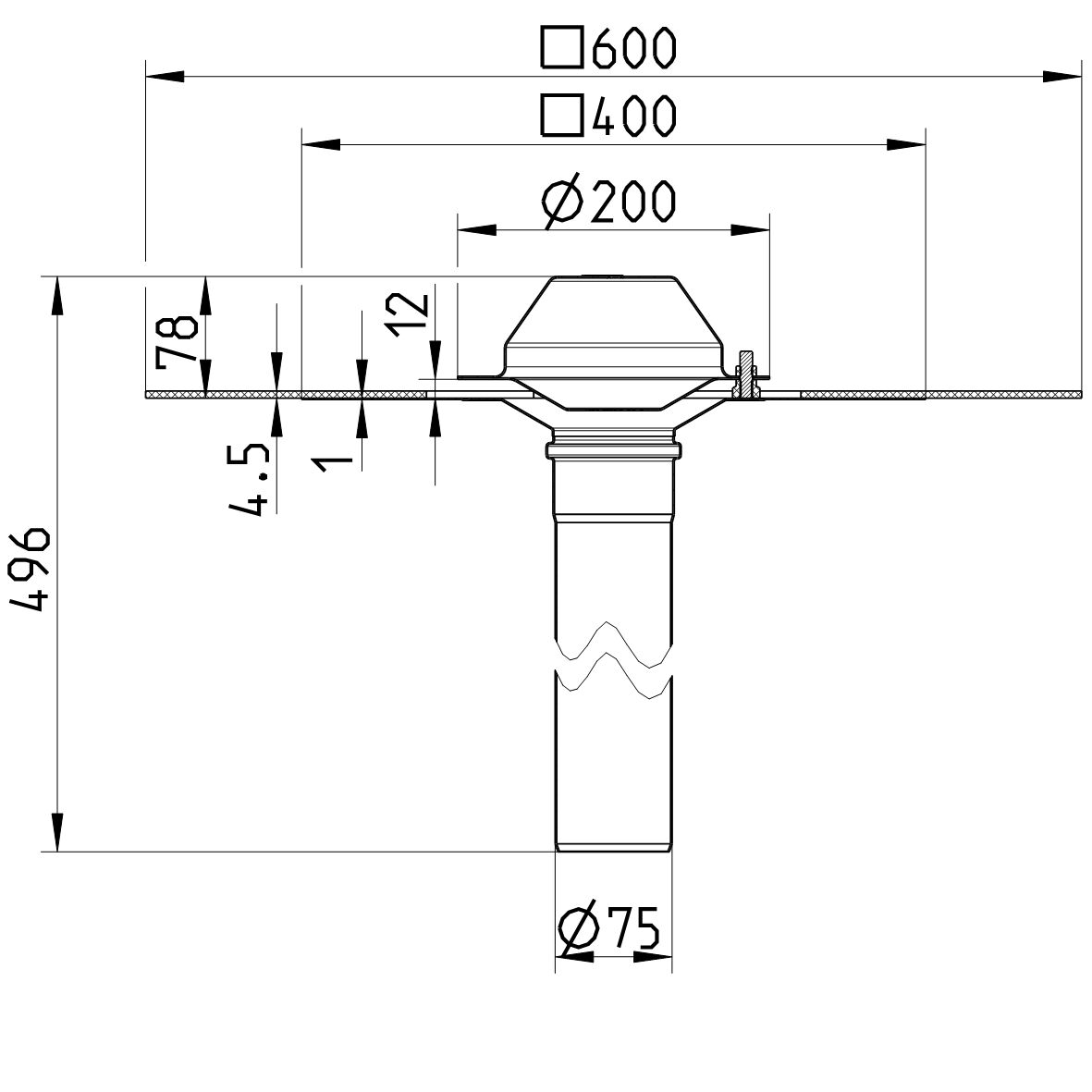 Wpust dachowy podciśnieniowy DN =75mm z kołnierzem ze stali nierdzewnej i dodatkowym kołnierzem z papy