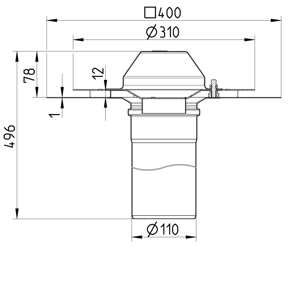 Wpust dachowy podciśnieniowy fi110 mm z kołnierzem nierdzewnym do pojedynczej warstwy izolacyjnej
