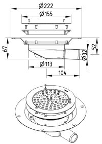 Wpust mini MULTI, odpływ poziom DN =32/40, ruszt okrągły, w komplecie adaptor, stal kwasoodporna