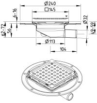 Wpust mini, odpływ poziom DN =32/40, w komplecie adaptor, syfon wykluczony, stal kwasoodporna