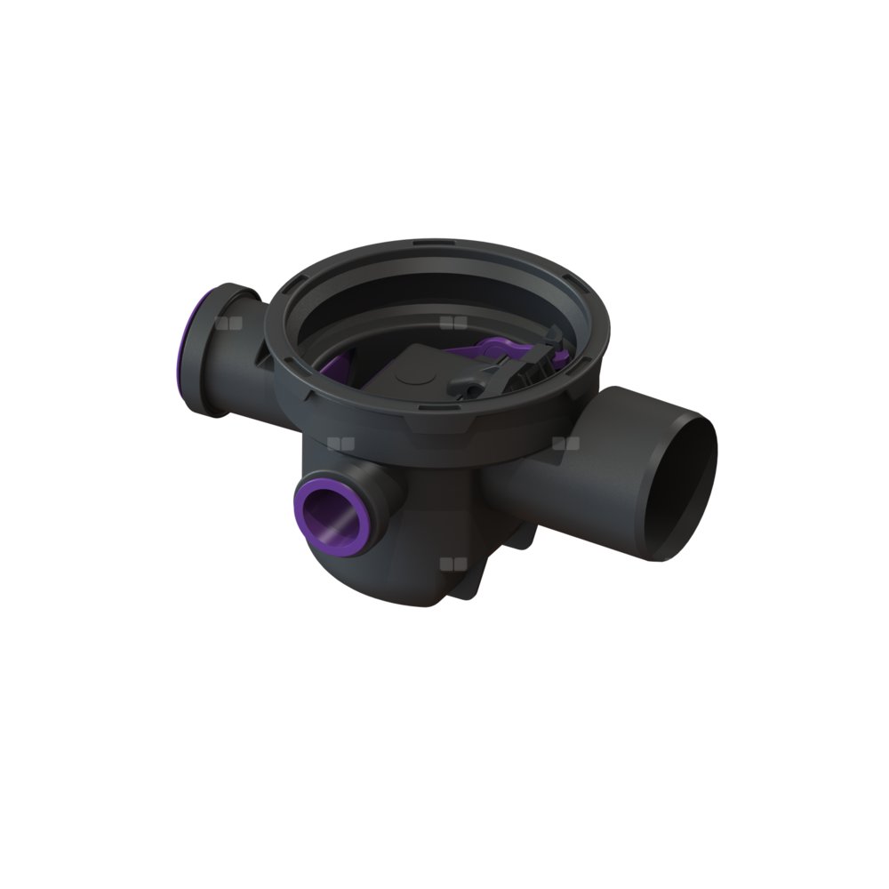 Wykonany z tworzywa sztucznego korpus jest wyposażony w wyjmowany syfon oraz dwa dopływy DN 50 i jeden dopływ DN 70 z zaślepką.