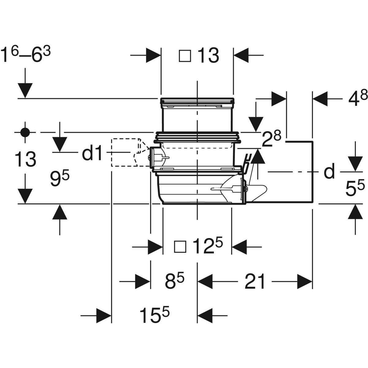 Wpust podłogowy Geberit Varino poziomy, d110: d=110mm, d1=50mm