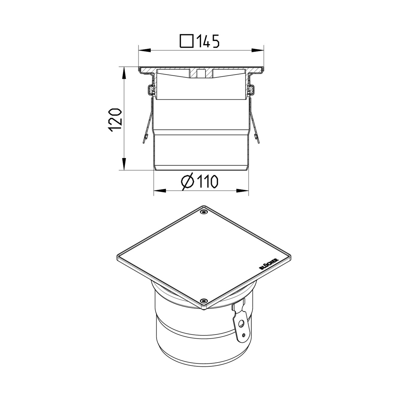 Wpust rewizyjny 145x145 ruszt kwadratowy 6 mm, odpływ pion fi110 mm, przykręcany śrubami, klasa obciążen L15 (1500kg)