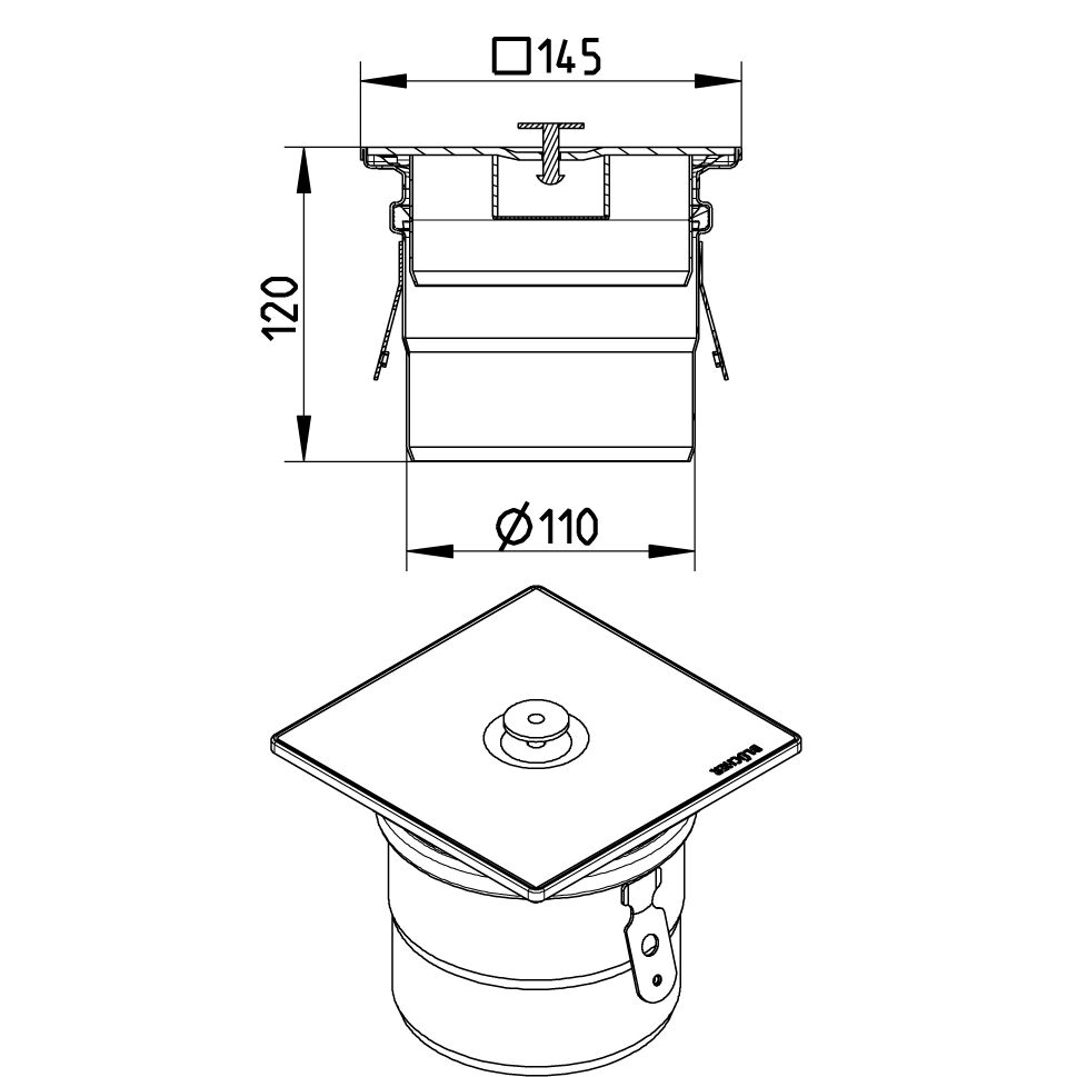 Wpust rewizyjny ruszt 145x145 ruszt kwadratowy, odpływ pion DN =110 mm, na uchwyt, stal kwasoodporna