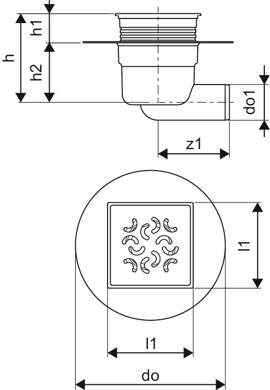 Wpust UPONOR Aqua Ambient Classic Arco z 1 przyłączem 50, odpływ poziomy, kratka 120x120mm stal nierdzewna