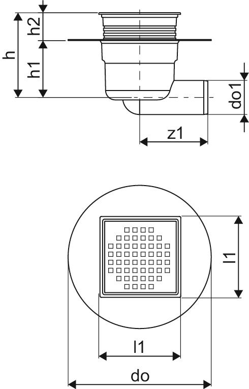 Wpust UPONOR Aqua Ambient Classic Cube z 1 przyłączem 50, odpływ poziomy, kratka 120x120mm stal nierdzewna