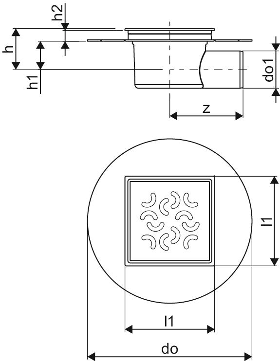 Wpust UPONOR Aqua Ambient Super Arco z 1 przyłączem 50, odpływ poziomy, kratka 120x120mm stal nierdzewna