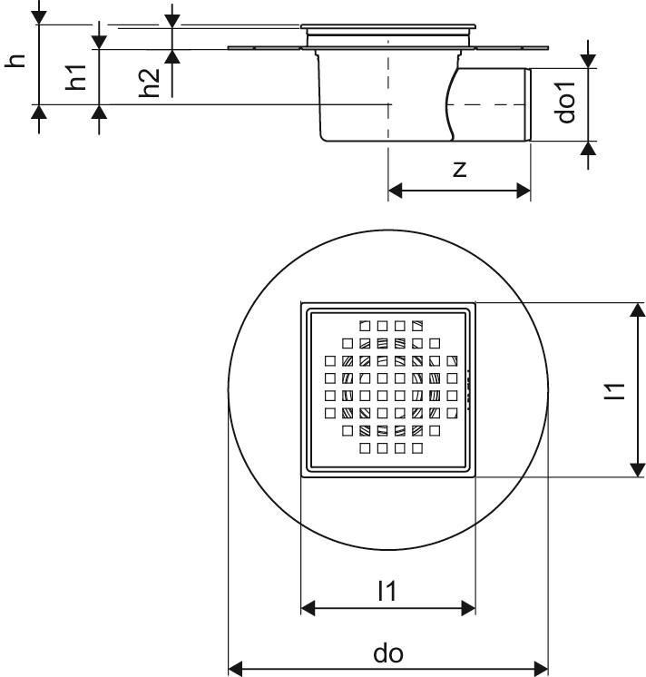 Wpust UPONOR Aqua Ambient Super Cube z 1 przyłączem 50, odpływ poziomy, kratka 120x120mm stal nierdzewna