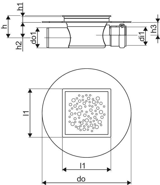 Wpust UPONOR Aqua Ambient Super Spot z 1 przyłączem 50, odpływ poziomy, kratka 120x120mm stal nierdzewna
