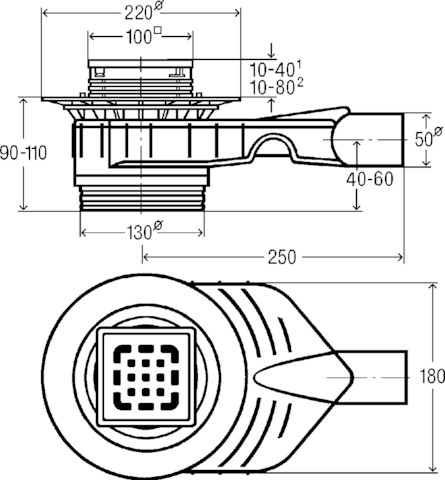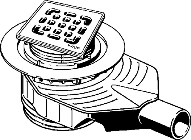 Wpust VIEGA 491410 z 1 przyłączem DN 50, odpływ pionowy, kratka 100x100mm stal