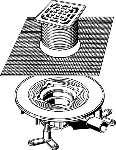 Wpust VIEGA 491421 z 1 przyłączem DN 50, odpływ pionowy, kratka 150x150mm stal