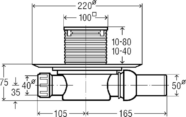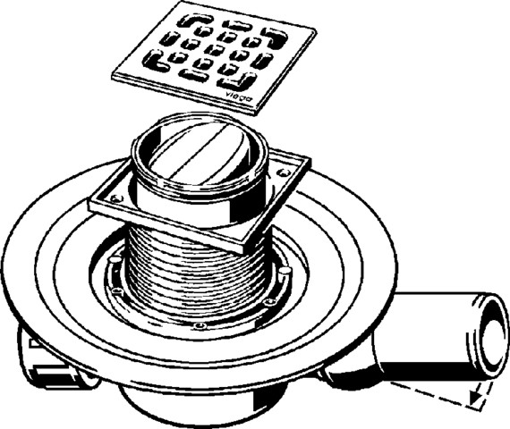 Wpust VIEGA 49362 z 1 przyłączem DN 50, odpływ pionowy, kratka 100x100mm stal