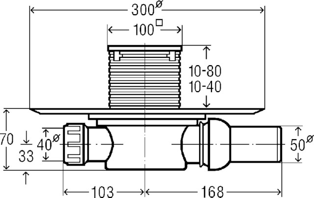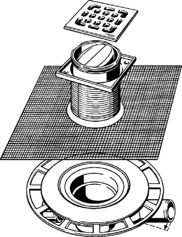 Wpust VIEGA 49364 z 1 przyłączem DN 50, odpływ pionowy, kratka 100x100mm stal