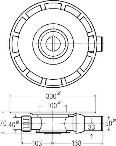Wpust VIEGA 4938 z 1 przyłączem DN 50, odpływ pionowy, kratka 300x300mm