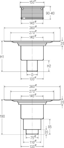 Wpust VIEGA 49511 z 1 przyłączem DN 100, odpływ poziomy, kratka 1150x150mm stal
