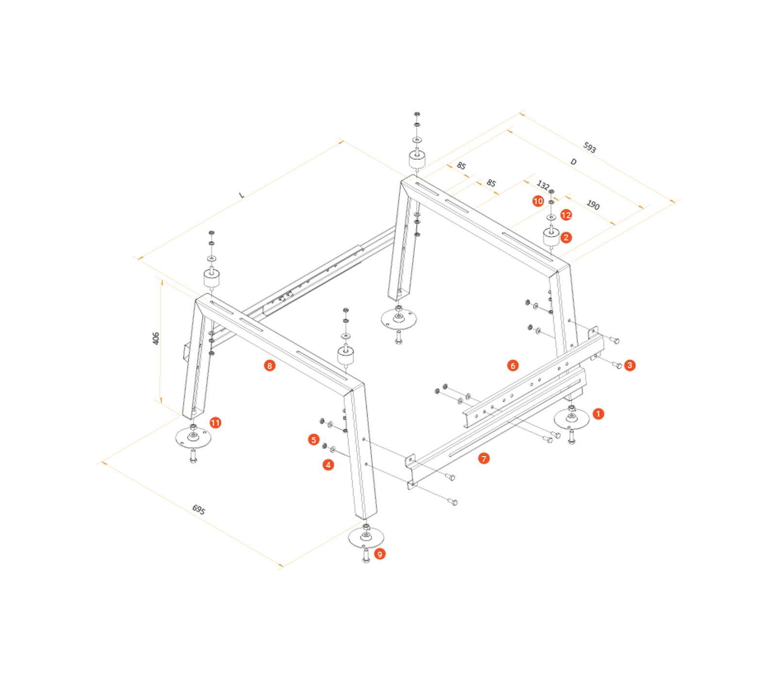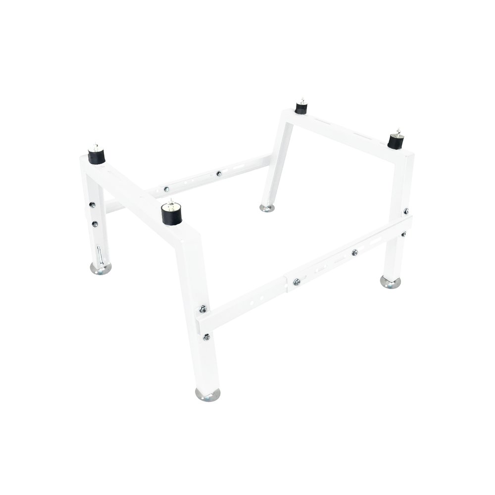 Konstrukcja wspornika przystosowana jest do montażu jednostek zewnętrznych pomp ciepła Rotenso® typu split poprzez zmianę (wydłużenie lub skrócenie) rozstawu łączników. Wspornik montażowy jest wykonany ze stali podwójnie zabezpieczonej przed korozją procesem galwanizacji i malowany proszkowo. Wspornik wyposażony jest w regulowane nóżki z otworami montażowymi umożliwiającymi przymocowanie go do podłoża.