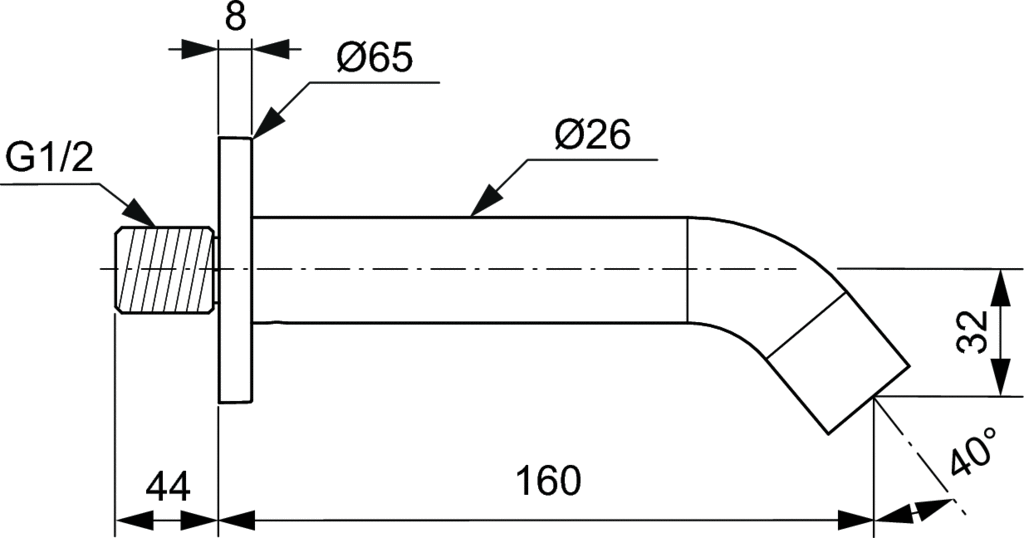 Wylewka długości 180 mm. Metalowa chromowana rozeta ᴓ65 mm z logo Ideal Standard. Aerator laminarny typu Caché M24x1i. Podłączenie G1/5.