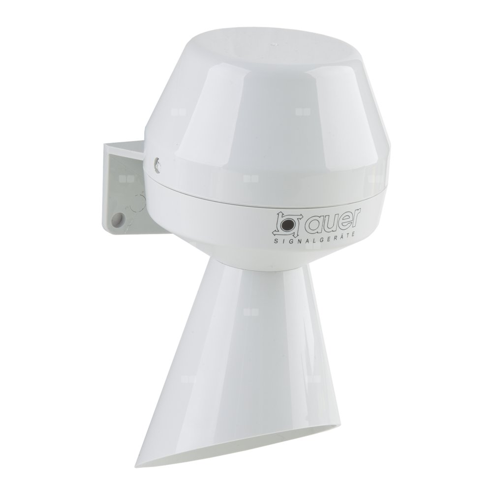 Buczek z lejem sterującym roznoszenie się dźwięku do wewnątrz i na zewnątrz do montażu naściennego. Sygnał alarmowy generowany przez elektromechaniczne wytwarzanie dźwięku z membraną stalową (88 dBA).