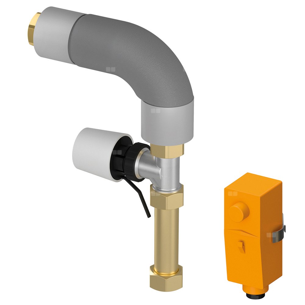 Zabezpieczenie termicznne to moduł, który zapobiega niedopuszczalnemu wzrostowi temperatury w obiegu w przypadku usterki. Jeżeli temperatura ustawiona na czujniku zostanie przekroczona, zawór zintegrowany z rurociągiem zasilającym zamyka dopływ ciepłej wody do obiegu grzewczego.