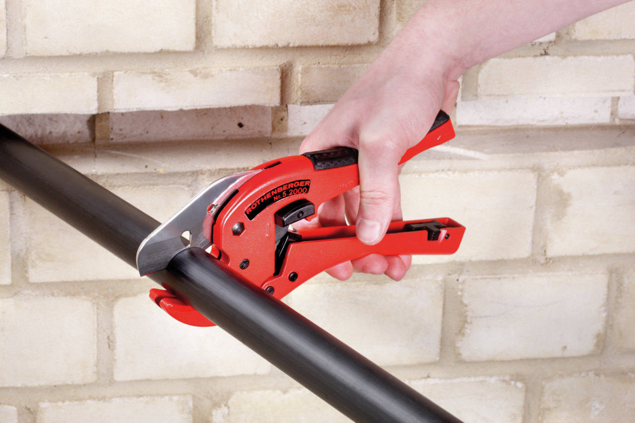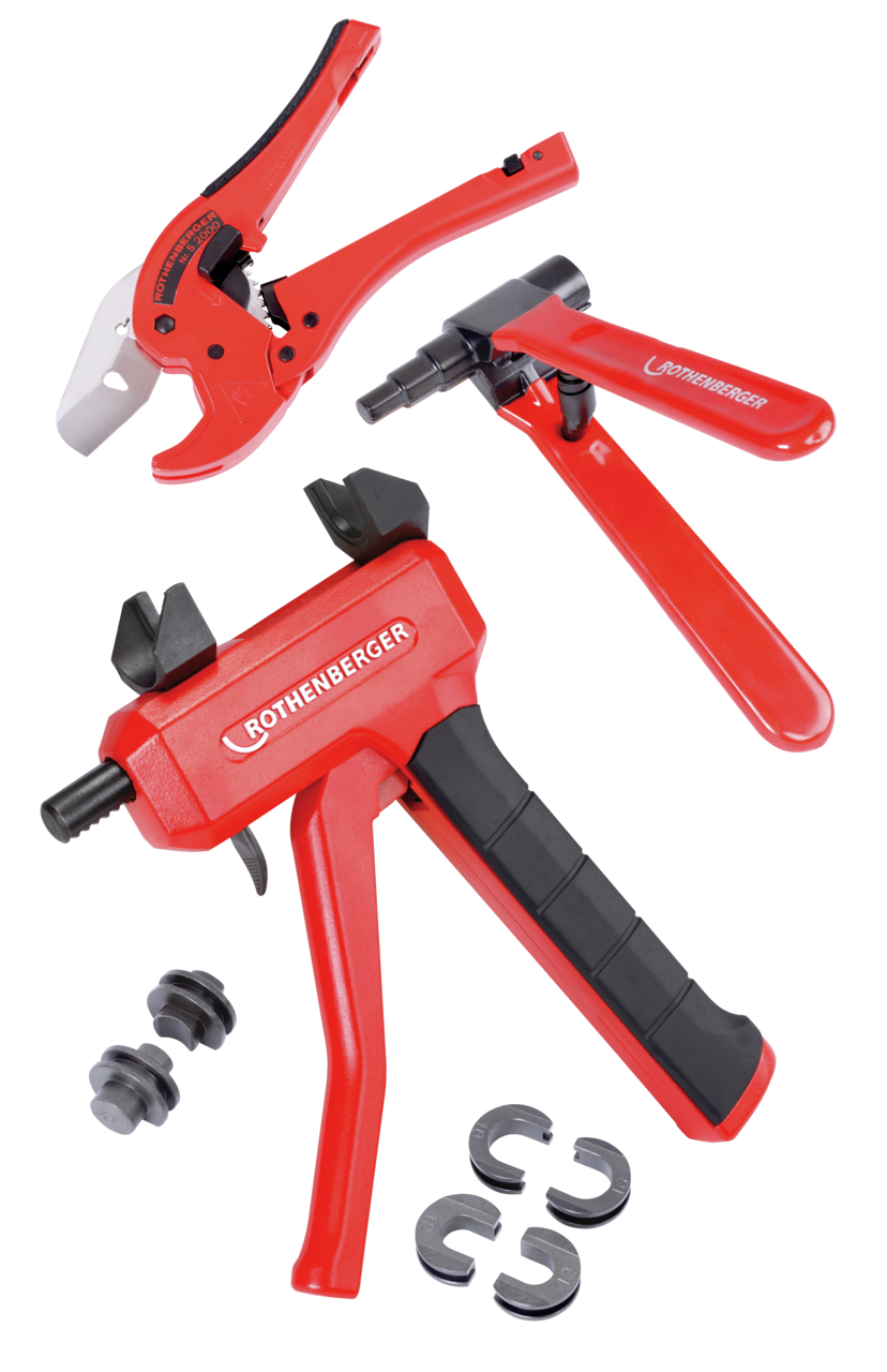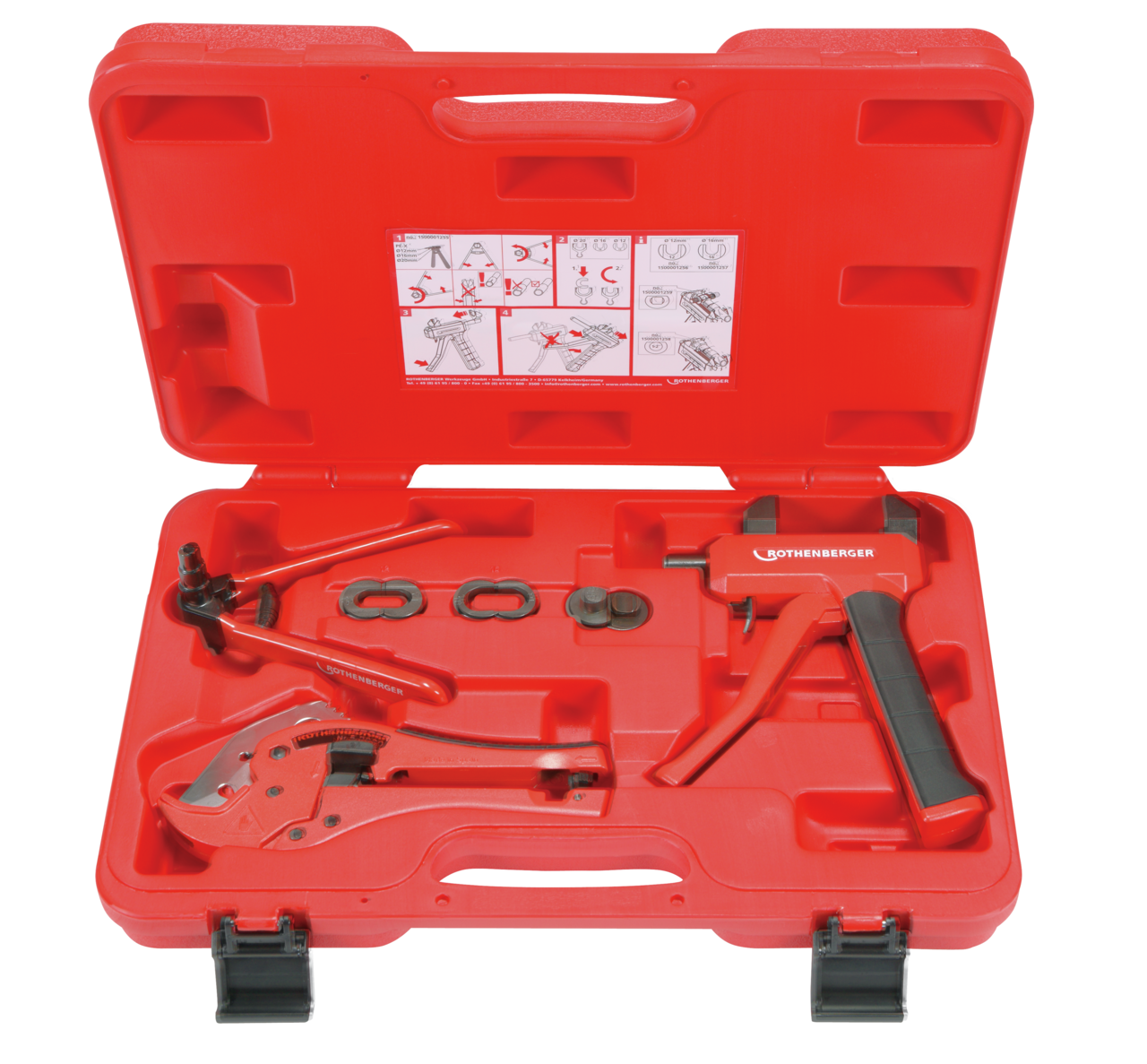 Wygoda: zestaw 3 w 1 składający się z nożyc do cięcia tworzyw sztucznych ROCUT TC 42, ekspandera i ręcznej zaciskarki osiowej - wszechstronny pakiet do bezproblemowego łaczenia rur i kształtek.