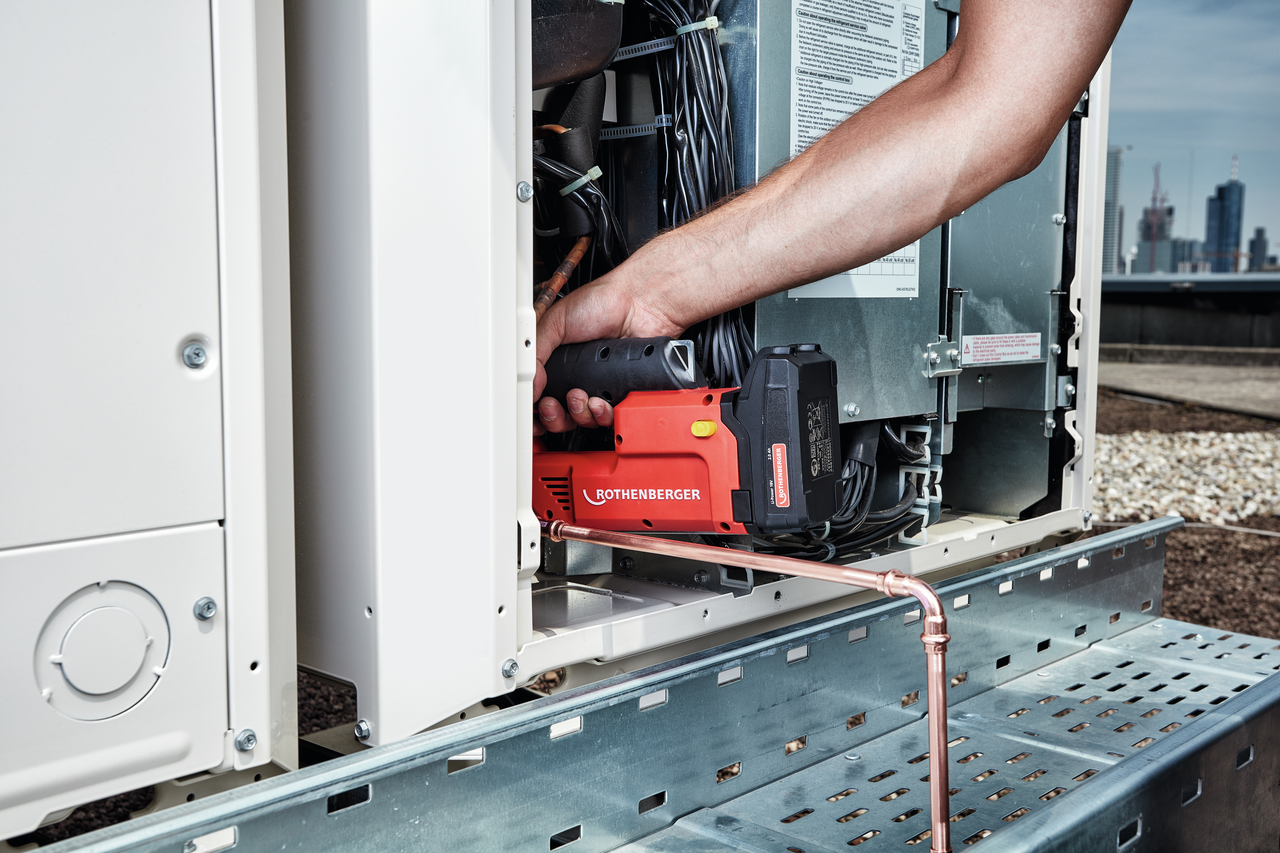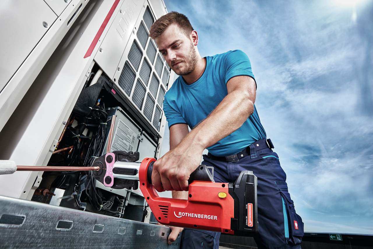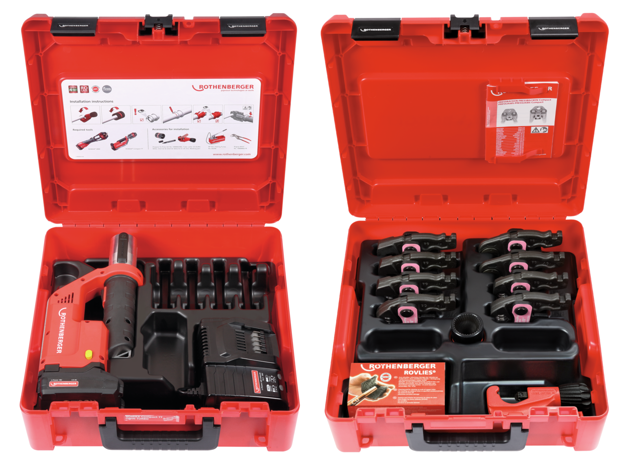 Zaciskarka ROMAX Compact TT, zestaw szczęk zaciskowych MaxiPro 1/4"-1 1/8", akumulator 2.0 Ah/18 V, ładowarka UE w ROCASE