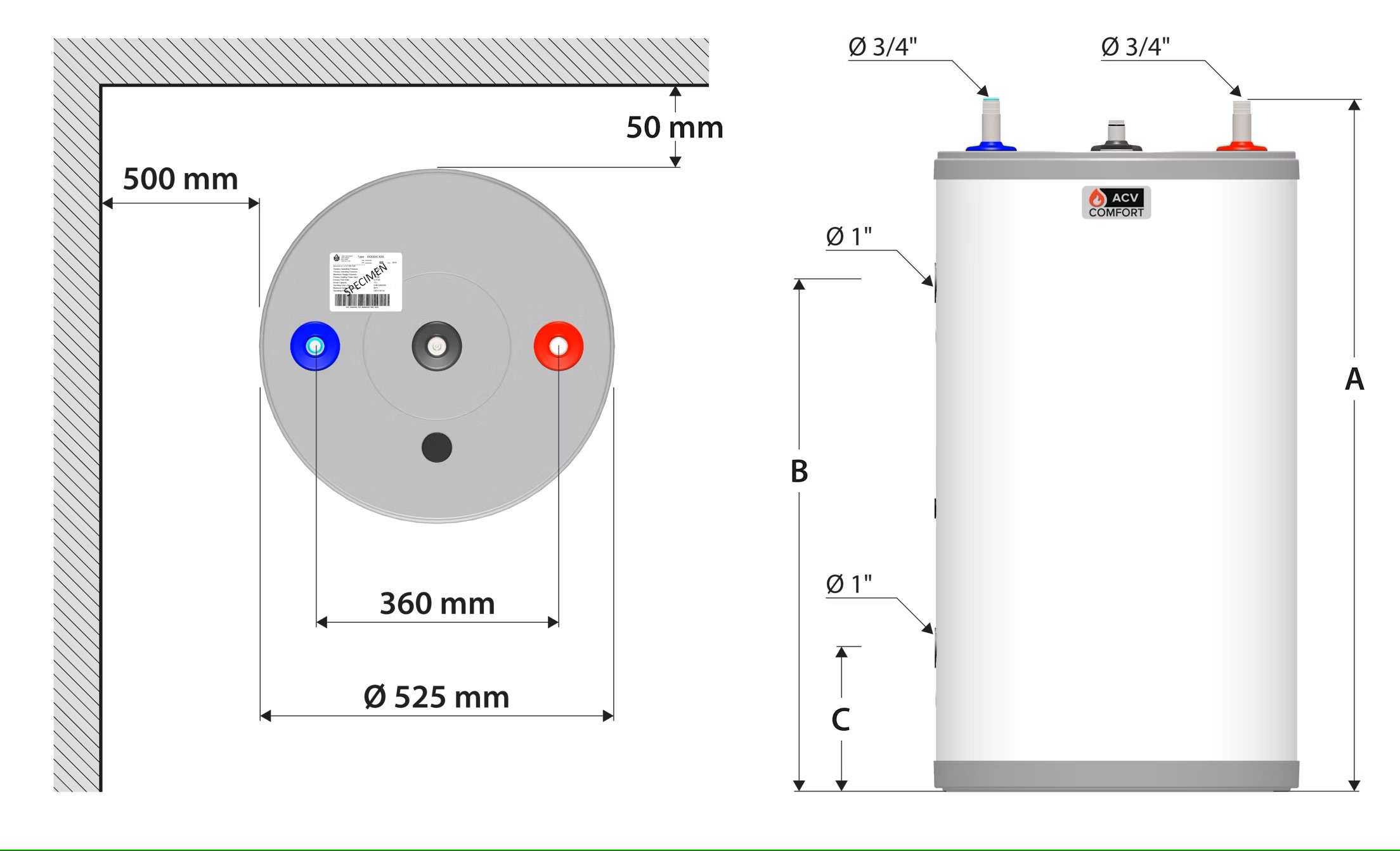 Zasobnik c.w.u. ACV COMFORT 130 pojemność 130 l, stal nierdzewna