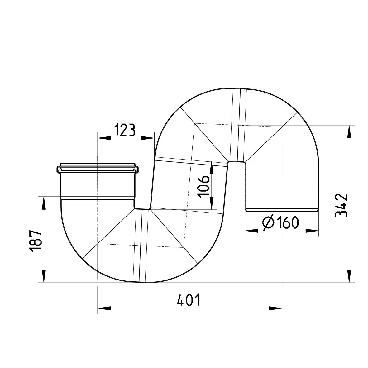 Zasyfonowanie kolankowe 180 st. Syfon rurowy "S" DN =160 mm, stal kwasoodporna