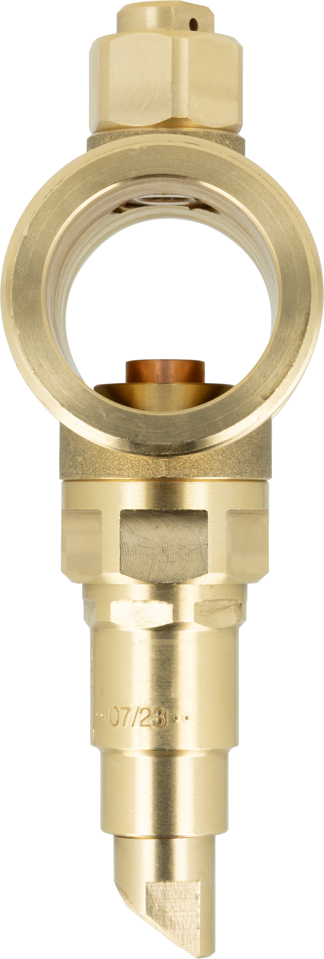 Specjalny kształt wylotu z zaworu zmniejsza napięcie powierzchniowe kropel wody, zapobiegając ich przywieraniu do wylotu z zaworu.