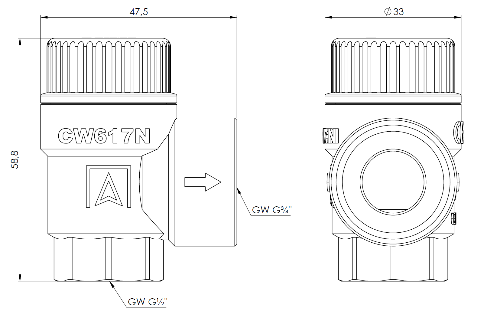 Zawór bezpieczeństwa AFRISO MSW sprężynowy mosiądz 10 bar GW x GW 1/2'' x 3/4''