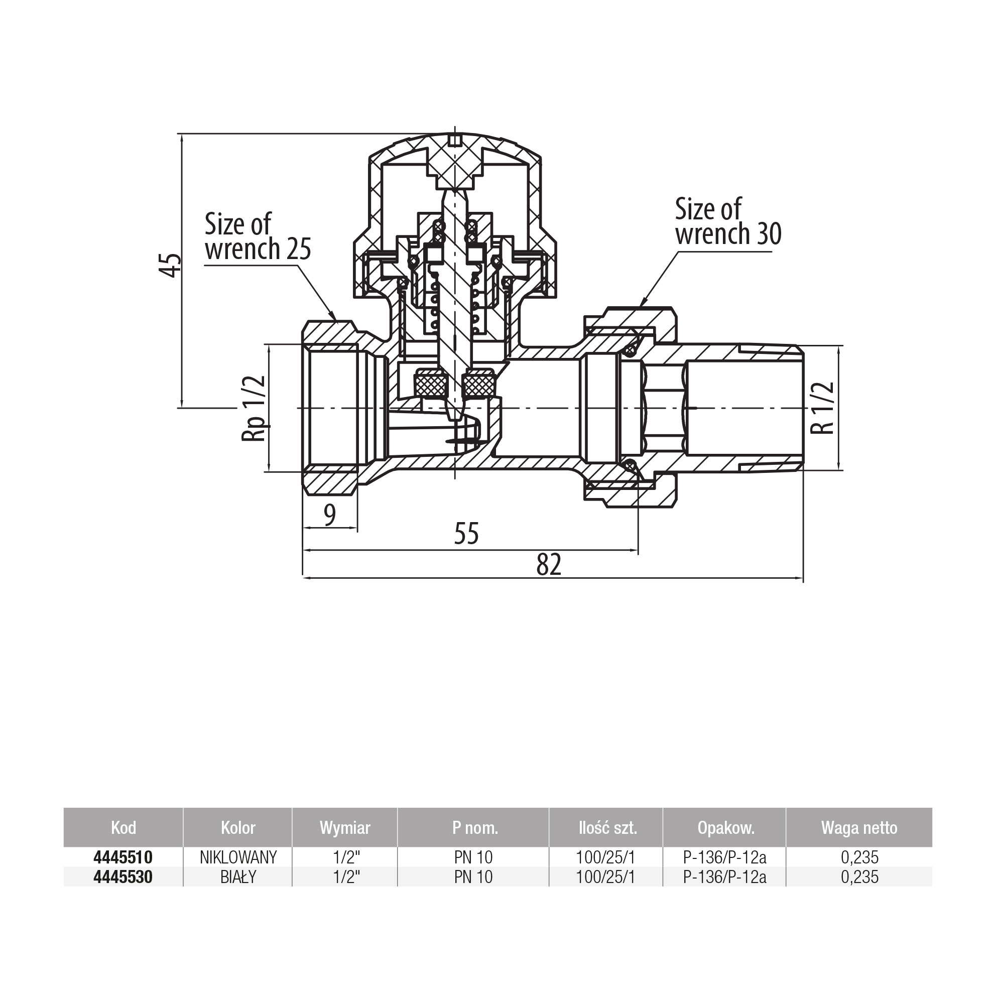 Zawór grzejnikowy VALVEX IRIS prosty, połączenie 1/2'' x 1/2'' biały