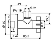 Zawór kątowy 4wing 1/2" x 3/8" chrom