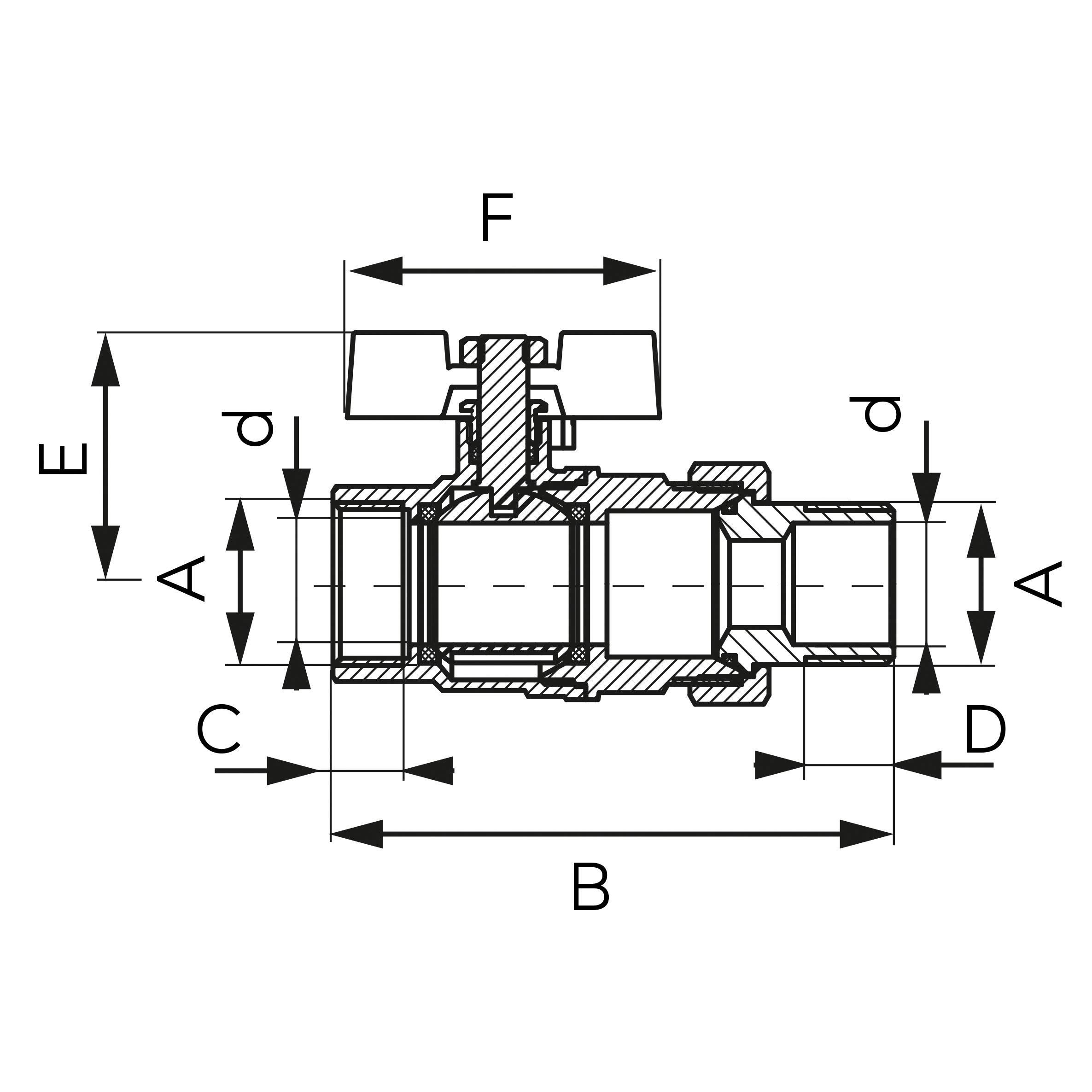 Zawór kulowy FERRO F-POWER 1 1/4'' GZ x GW, uchwyt: motylek