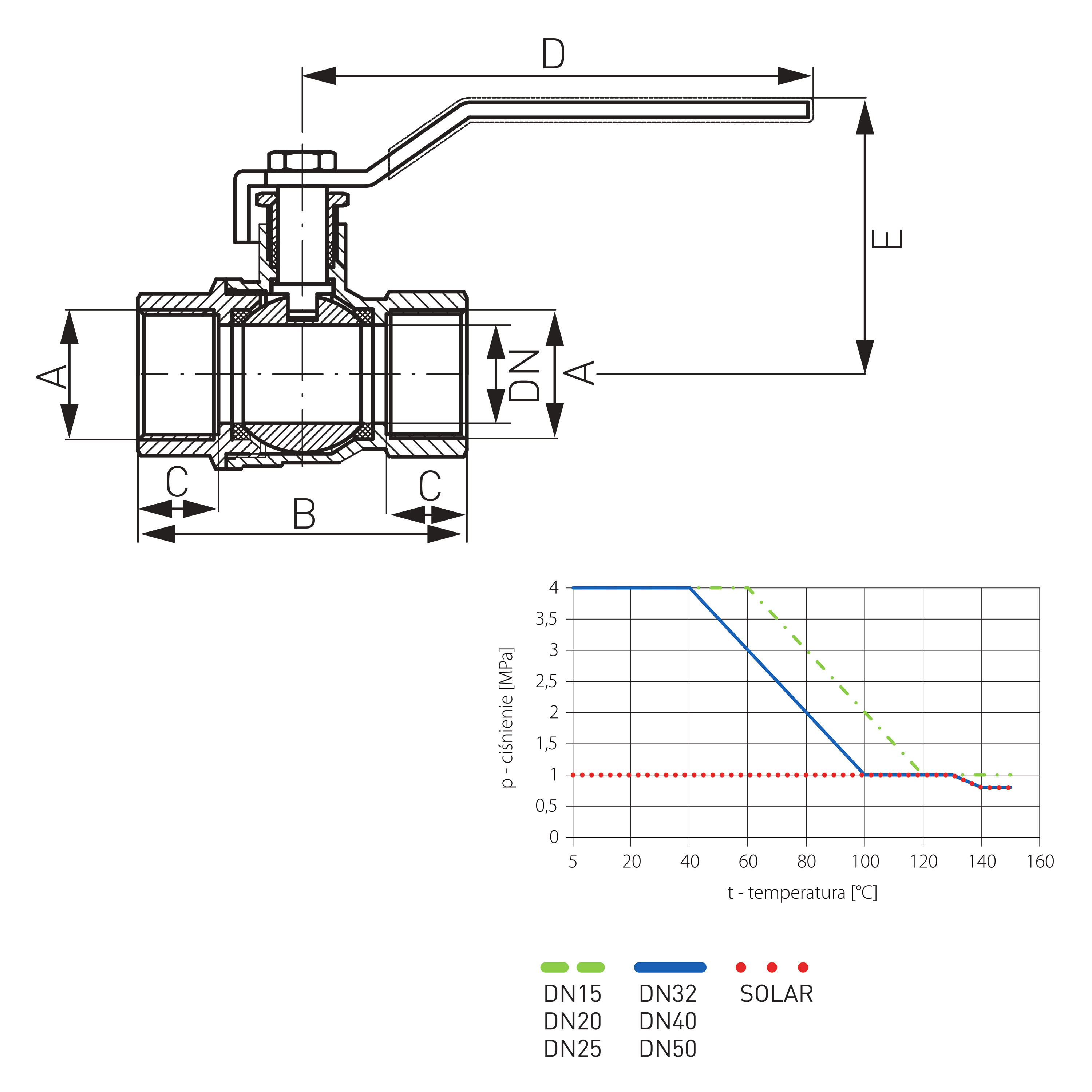 Zawór kulowy FERRO HERKULES 1 1/4'' GW, uchwyt: dźwignia