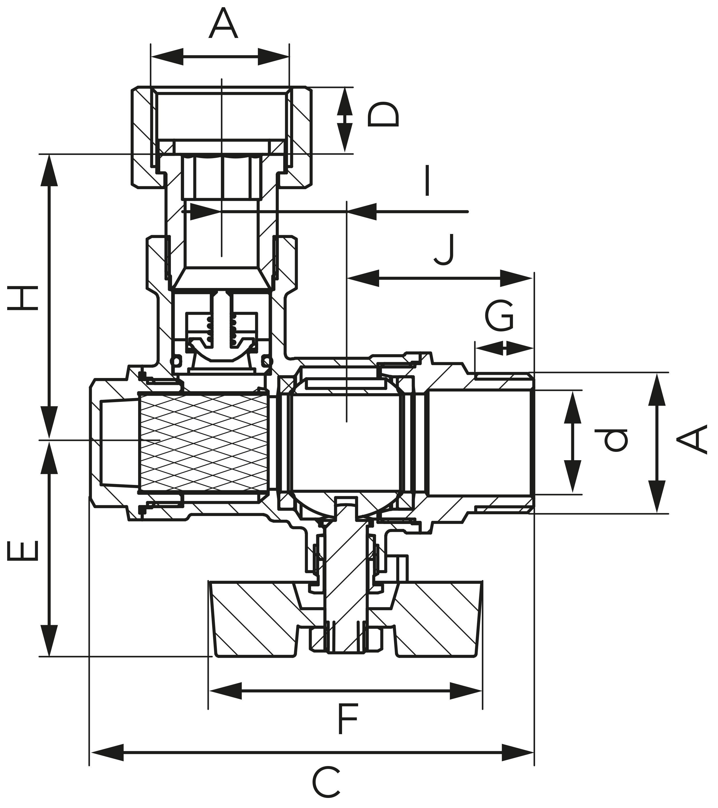 Zawór kątowy z obrotową nakrętką. Uszczelnienie płaskie, uszczelka EPDM. Konstrukcja zaworu umożliwia prosty montaż i demontaż urządzeń. Zawór wykonany jest z wysokogatunkowego mosiądzu CW617N - 4MS. Zastosowanie w instalacjach, gdzie medium to woda lub woda/glikol. Uchwyt zaworu w postaci motylka umieszczony jest pod korpusem zaworu. Zawór posiada filtr ze stali nierdzewnej AISI304 oraz zawór zwrotny.