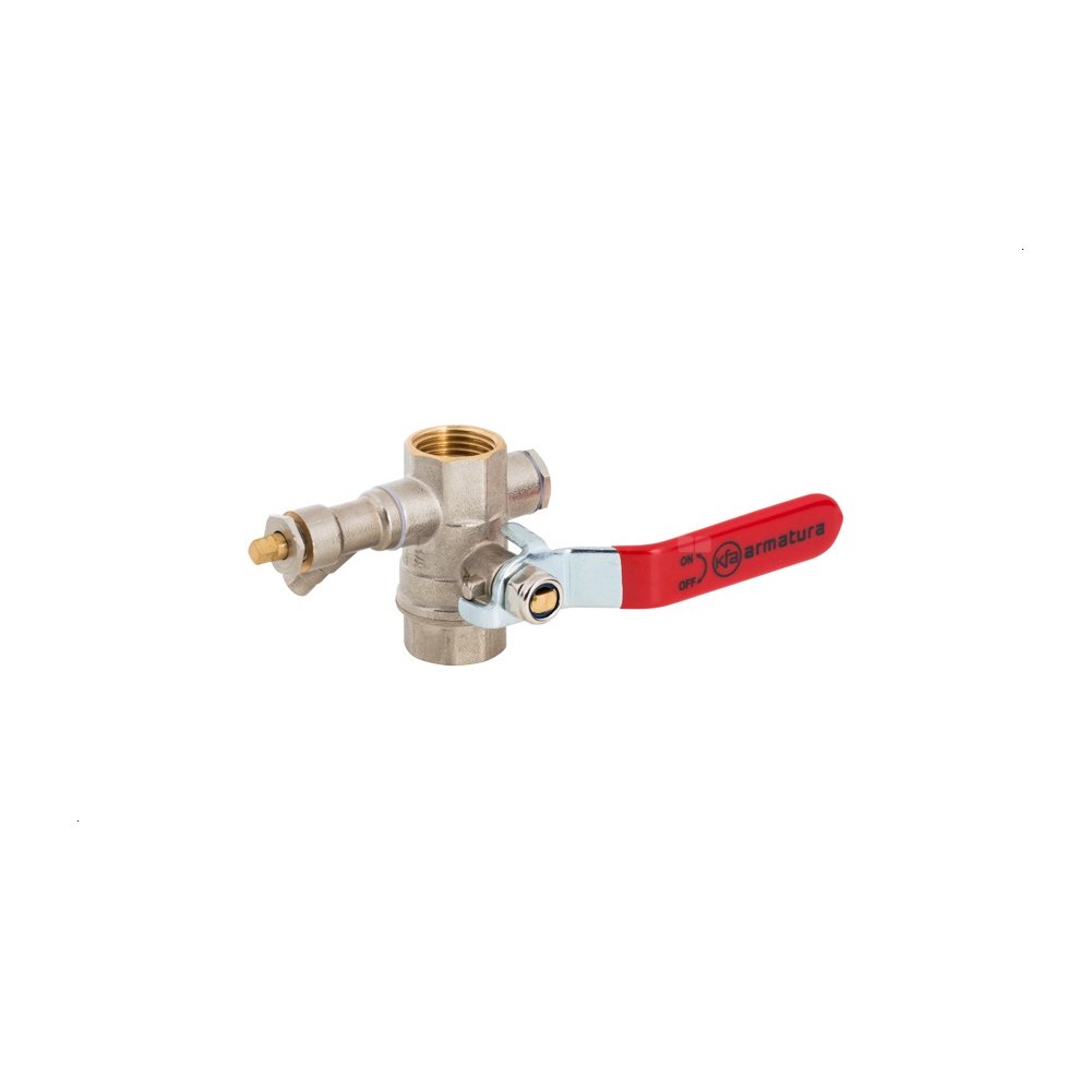 Zawór kulowy nakrętno-nakrętny DN20 (3/4") z zaworkiem odpowietrzająco-spustowym, korkiem i dźwignią