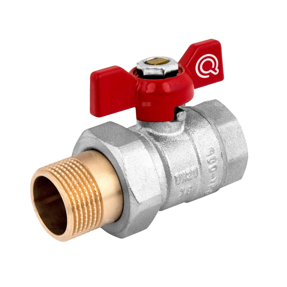 Zawór kulowy QIK 05 mosiądz, PN30 1'' GW x GZ ze śrubunkiem, uchwyt: motylek