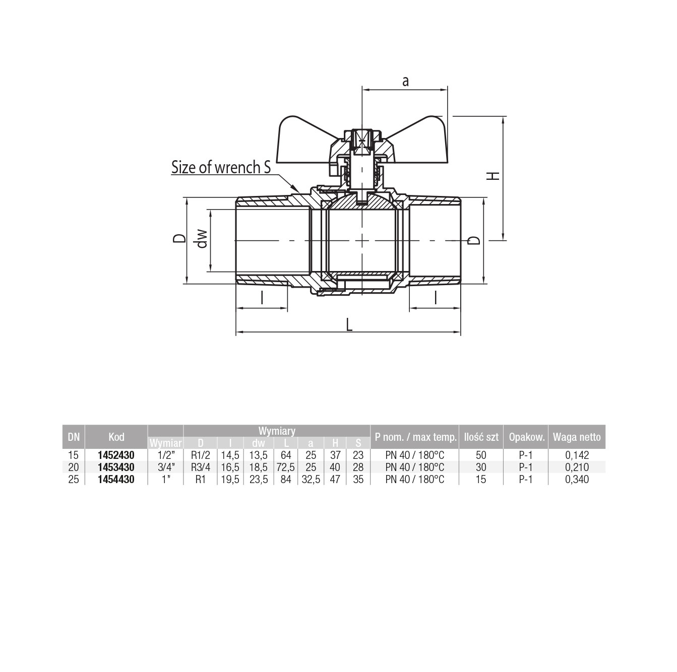 ONYX Kurek kulowy niklowany z dławikiem z motylkiem aluminiowym (MAl) (wersja W-W) 3/4
