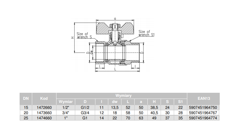 Kurek kulowy nikl. z dławikiem, z motyl. alum. (MAl) (wersja N-W) ORO 1/2