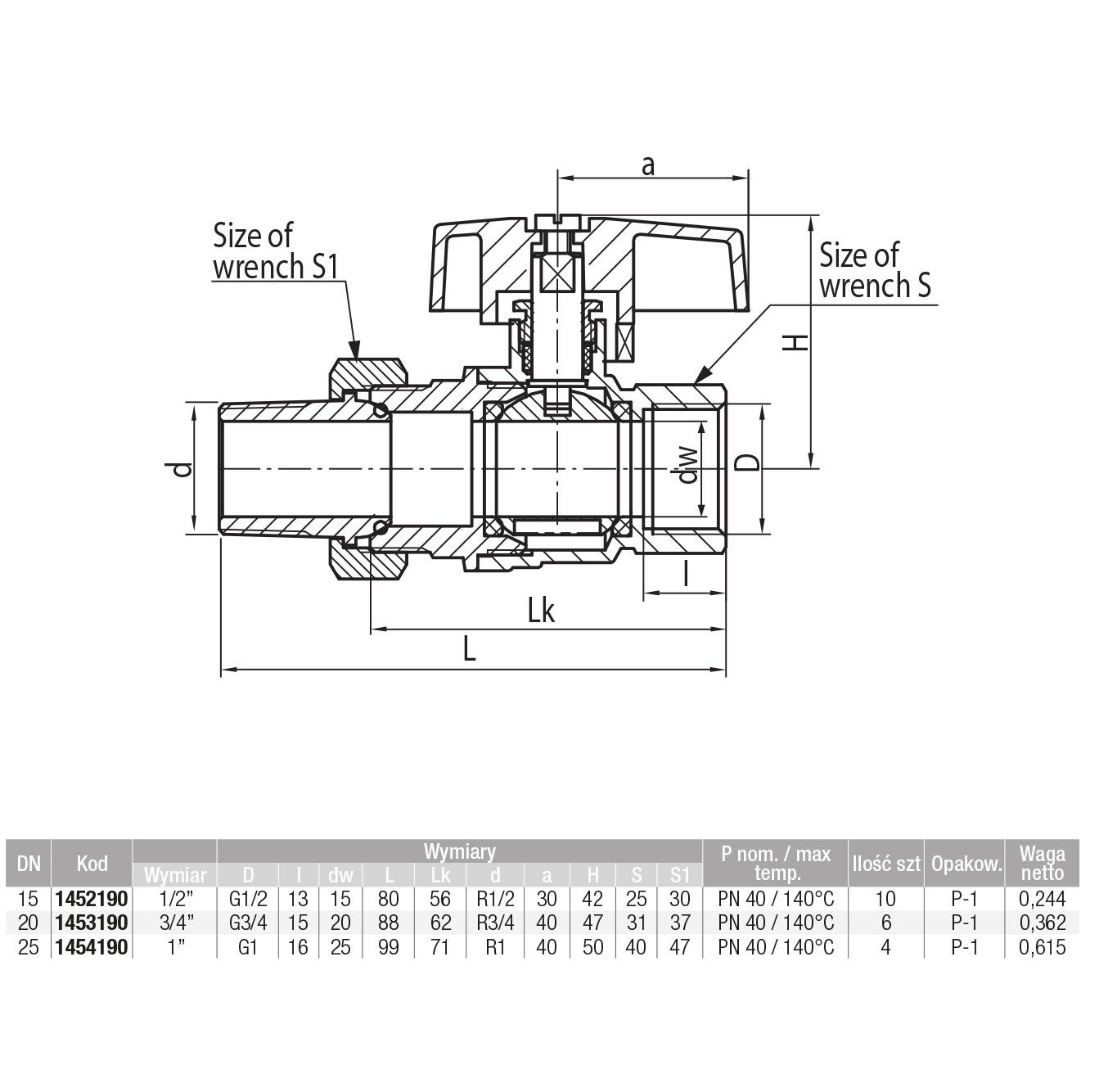 Zawór kulowy VALVEX Tryton mosiądz niklowany, PN40 1'' GZ x GW z półśrubunkiem, uchwyt: motylek
