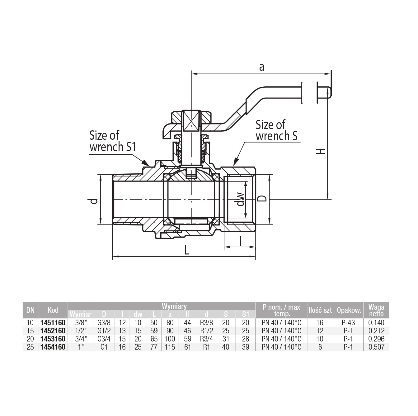 Kurek kulowy nikl. z dławikiem z dźwignią stal. (DSt) (wersja N-W) TRYTON 1”