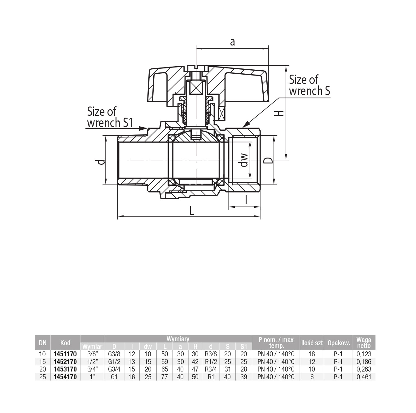 Kurek kulowy nikl. z dławikiem z motyl. alum. (MAl) (wersja N-W) TRYTON 1”