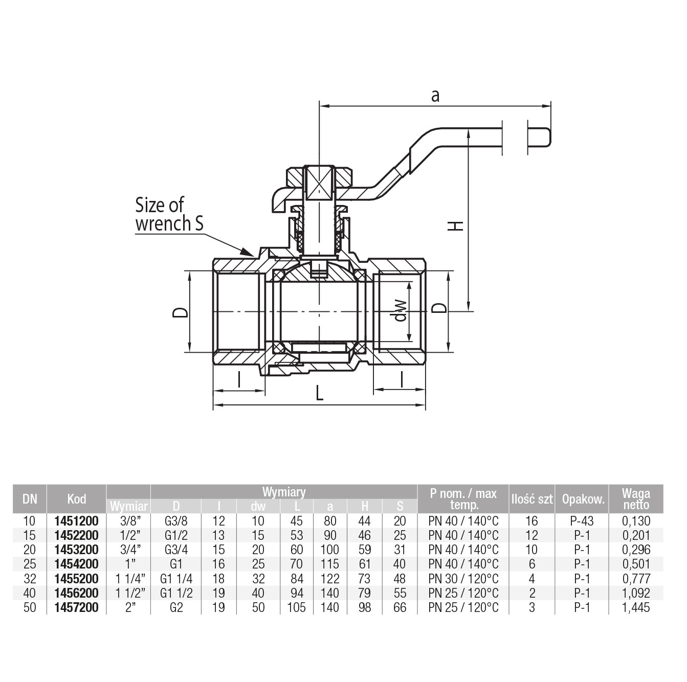 Kurek kulowy nikl. z dławikiem z dźwignią stal. (DSt) (wersja N-W) TRYTON 1”
