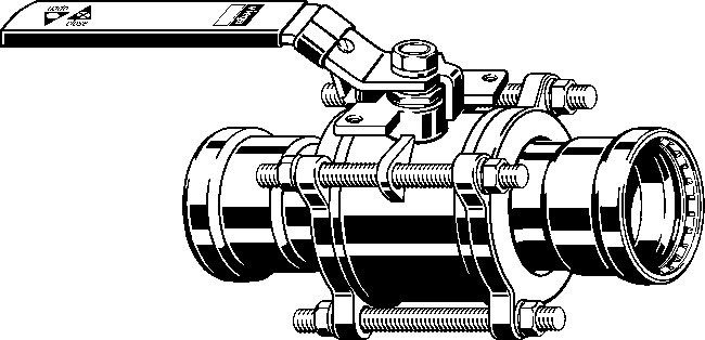 Obudowa zaworu stal nierdzewna, wałek, dławnica i kula ze stali nierdzewnej, elementy uszczelniające (przyłącza zaprasowywane) FKM, pierścienie nacinające, pierścienie oddzielające, dźwignia kształt L