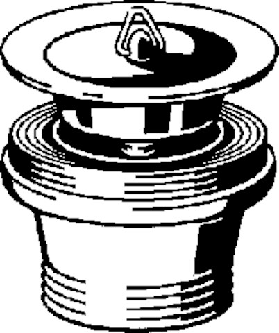 Zawór odpływowy. Przeznaczenie: zlewozmywak. Wyposażenie: Górna część zaworu ze stali nierdzewnej, korek do zaworu z ogniwem trójkątnym, dolna część zaworu z tworzywa sztucznego, nr wzoru 7432, nr kat. 102 678, G: 1½ Ø: 70 wysokość zabudowy dolnej części zaworu: 40